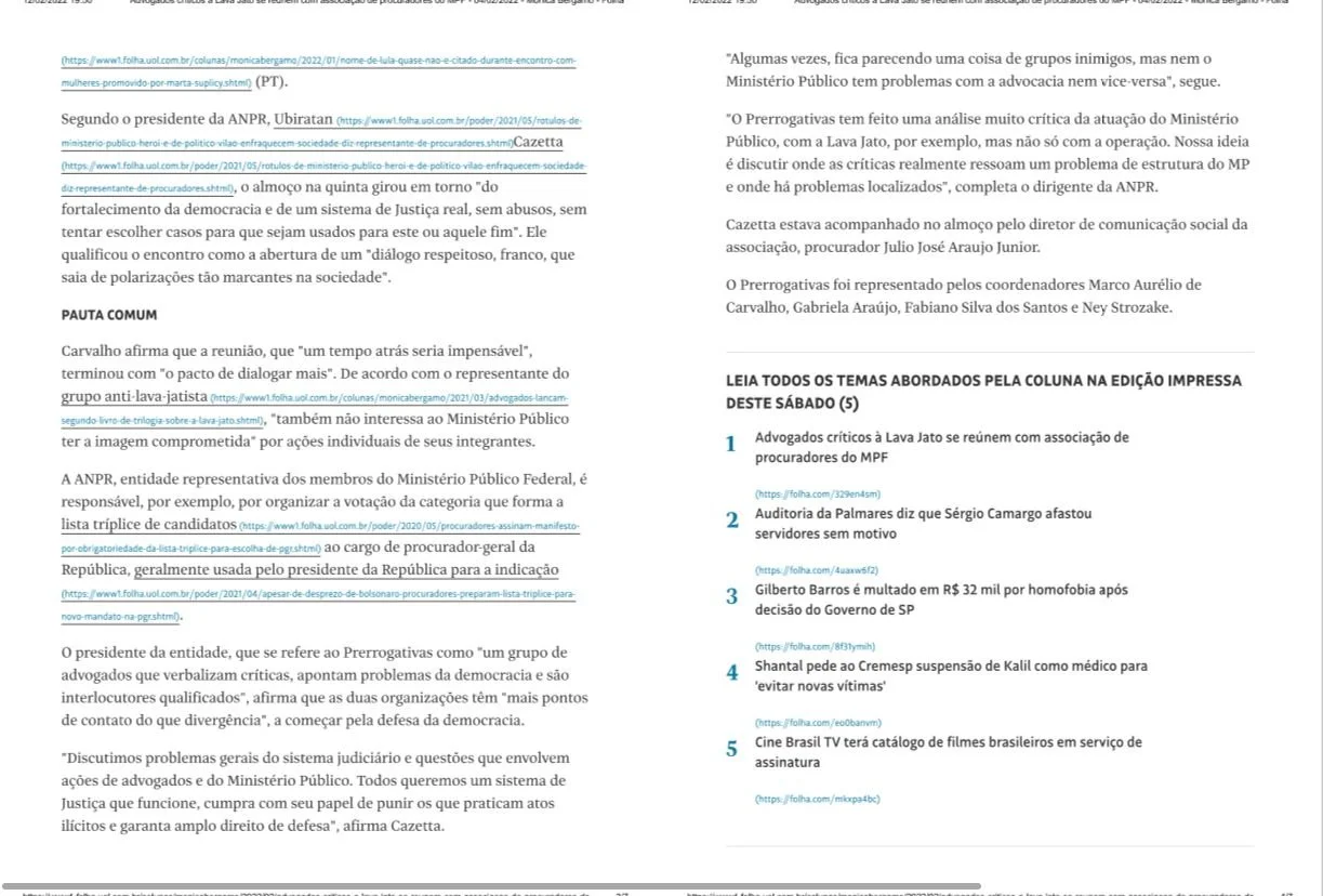 Para ler a matéria da Folha de São Paulo, basta clicar aqui ou ver as fotos abaixo compartilhadas. E o site da Associação Nacional de Procuradores da República também cobriu o evento, aqui.